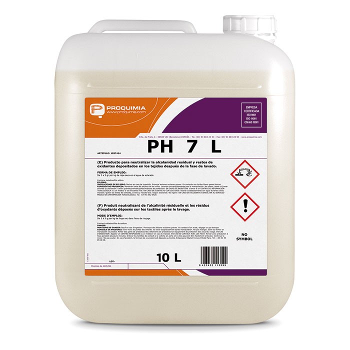 Neutralizante ácido que elimina restos de oxidantes e alcalinidade depositados nos tecidos depois da fase de lavagem. Especialmente desenvolvido para lavanderia industrial.