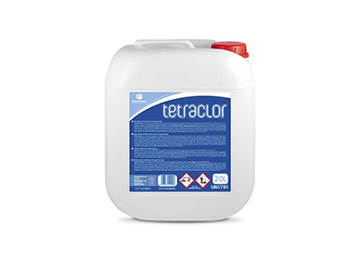 Branqueador químico baseado em hipoclorito de sódio estabilizado, eficiente a médias temperaturas. Contém uma alta concentração de agente oxidante: 1 g de TETRACLOR equivale a 2 g de uma lixívia de cloro habitual do mercado, tornando-o especialmente eficaz nas manchas de corantes.